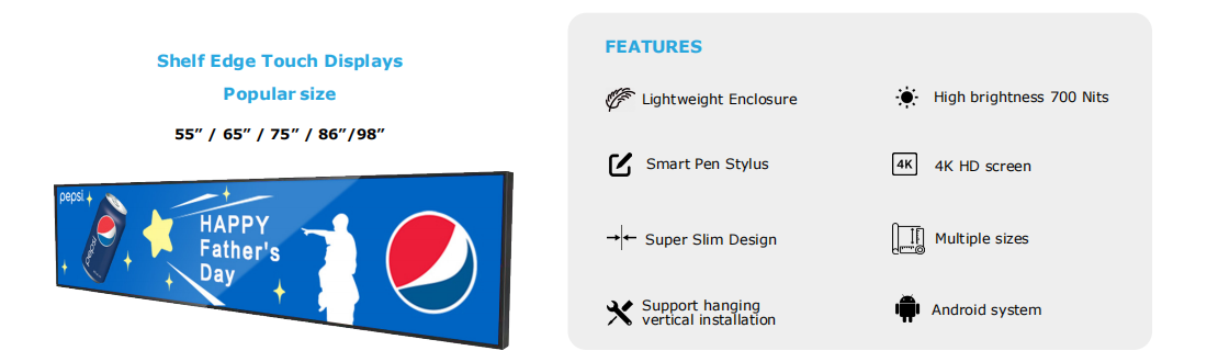 Instant information update:  Merchants can update the product information on the advertising screen in real time, including price changes, promotional activities, new product launches, etc. During the promotional season, it is possible to quickly display discount information to consumers, timely convey the latest business information, ensure that consumers receive the most accurate product updates, and enhance the shopping experience.