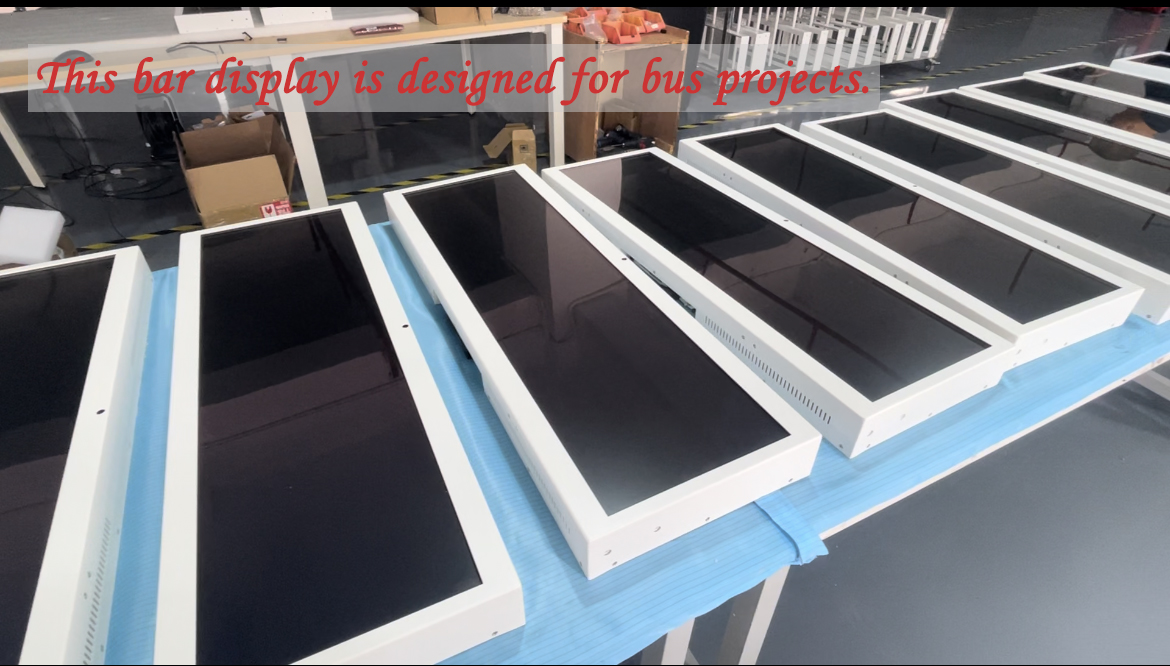 This is a vehicle - mounted commercial bar display produced by our company. This bar display is designed for bus projects. Considering that the vehicle's movement during driving may cause the entire vehicle to vibrate, our company has adopted an anti - vibration design for it. In an environment with strong external light, to achieve better display effects, we have used an original display with a brightness of 700 nits. This display features high color reproduction, making the advertisement colors vivid. Additionally, we've added anti - ultraviolet glass. The entire machine's housing is made of alloy material with a high - quality spraying process.