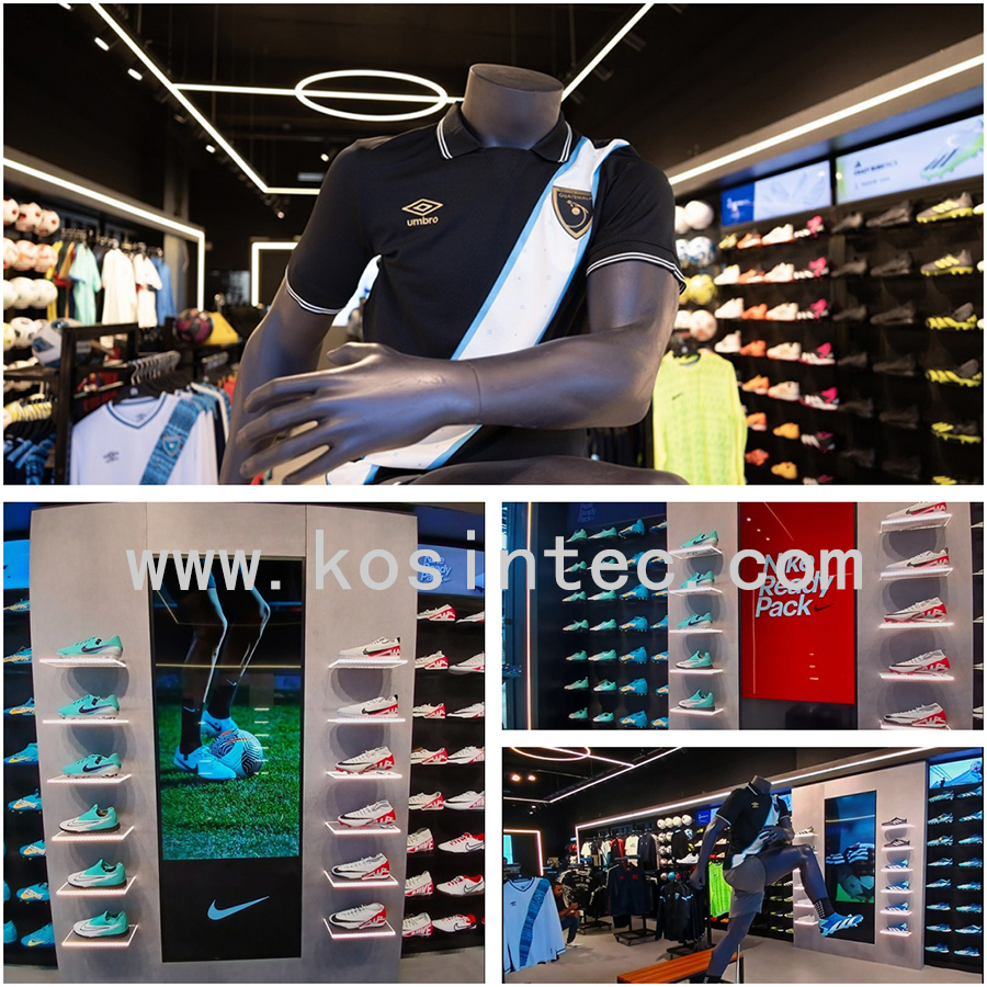 Hochauflösendes Display: Durch die Verwendung hochauflösender Technologie können die Details von Fußballschuhen und Uniformen, seien es exquisite Nähte oder einzigartige Designs, deutlich angezeigt werden, sodass vorbeigehende Kunden sie auf einen Blick erkennen können.