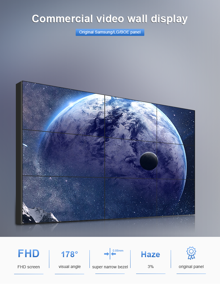 Modernste Technologien wurden eingesetzt, um einen 46 49 55 65 Zoll vertikalen 3x3 Ultra Narrow Bezel Controller-Bildschirm mit 4K-LED-Anzeige für Messewerbung zu entwickeln und herzustellen. KOSINTEC wurde mehrfach getestet und ist in der Lage, sein Bestes zu geben Wirkung in den Bereichen Digital Signage und Displays.