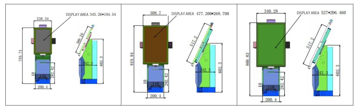 Zone d'affichage | 345,26*194,54 mm | 477,2*268,7 mm | 572*296,4 mm |