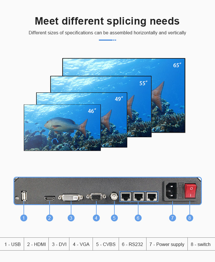 | lcd video wall control method | RS232 control | video wall monitor power consummtion | 250W |