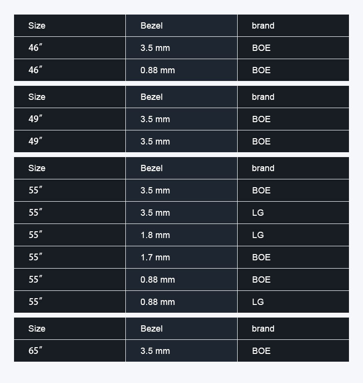 | 46 inch LCD video wall bezel width | 5.3mm | LCD video wall application condition | indoor and semi-outdoor |