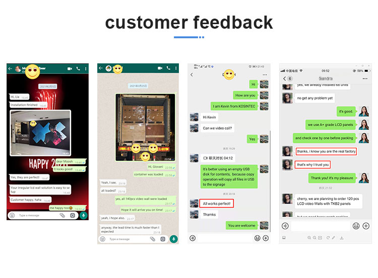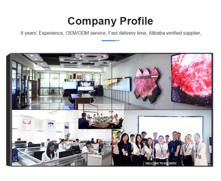 Shenzhen kosintec Co., Ltd is capable of providing a quality range of Big Size Smart 3x3 Lcd Video Wall Tv Display/outdoor Waterproof Seamless Lcd Video Wall. We have been constantly developing new technologies to manufacture value-added Big Size Smart 3x3 Lcd Video Wall Tv Display/outdoor Waterproof Seamless Lcd Video Wall.It can be widely found in the application field(s) of Digital Signage and Displays. KOSINTEC has been dedicated to the design, R&D, manufacturing, and updates of LCD video walls, digital shelf displays, digital menu boards, and high brightness digital signages. We fully hope that we can satisfy customers from different fields, countries, and regions by offering them high-quality products and professional service. If you have any questions or problems, please contact us at any time through the contact information listed on our website.