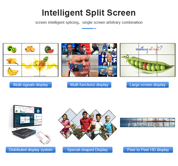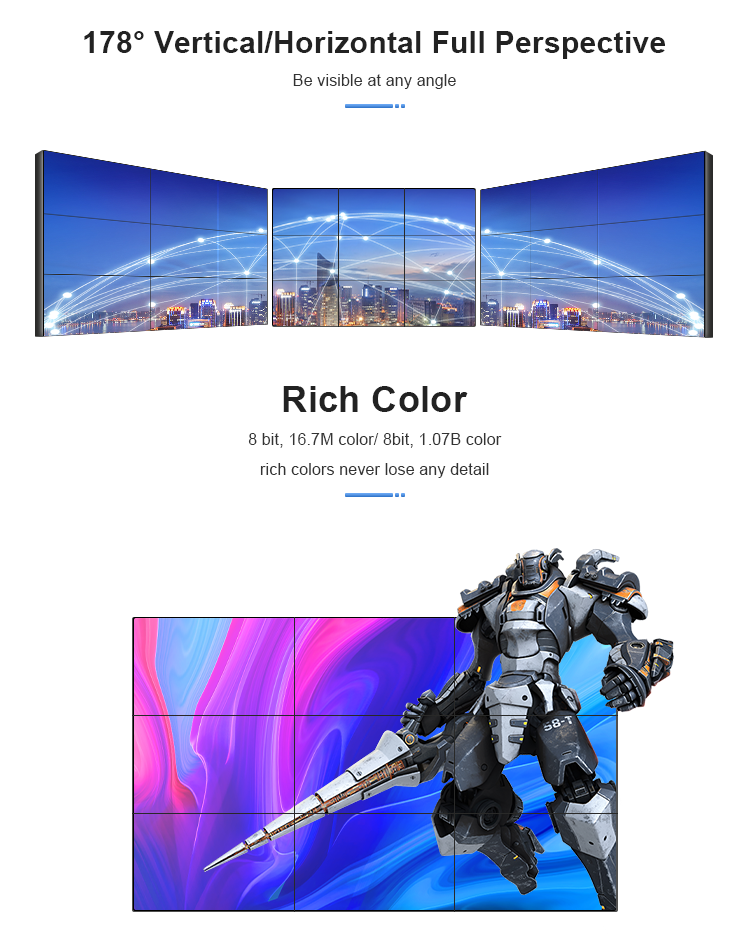 Our heavy investment in the product R&D has finally paid off. Shenzhen kosintec Co., Ltd has successfully rolled out a new product series, namely Video Wall Solutions Digital Display Screen Manufacturers 3.5mm 46 Inch Ultra Narrow Bezel Seamless 3x3 Lcd Video Wall. It is totally unique in several aspects including its appearance, features, and applications. The use of in Video Wall Solutions Digital Display Screen Manufacturers 3.5mm 46 Inch Ultra Narrow Bezel Seamless 3x3 Lcd Video Wall manufacturing has allowed us for more efficient use of resources and personnel.The product is highly recognized in the application field(s) of Digital Signage and Displays. In the future,Video Wall Solutions Digital Display Screen Manufacturers 3.5mm 46 Inch Ultra Narrow Bezel Seamless 3x3 Lcd Video Wall will increase more capital and technology investment to continuously improve the comprehensive competitiveness of the enterprise, and strive to remain invincible in the market forever.