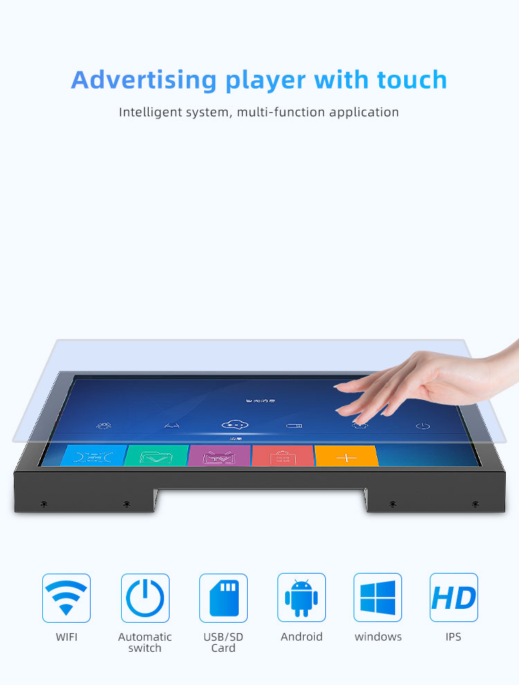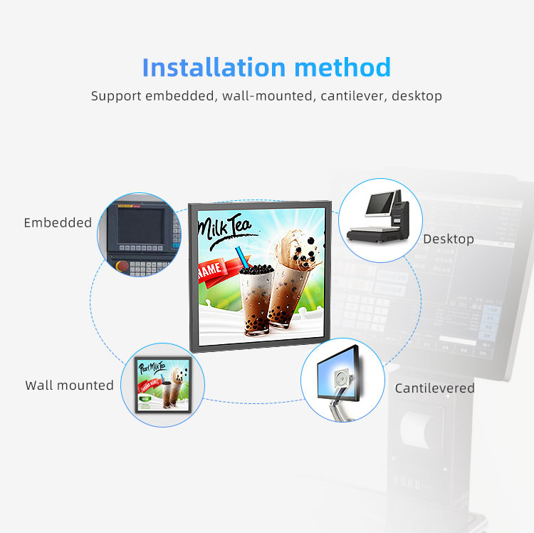 | Specification | Stretch bar, Digital Poster, Touch Screen, Video Wall, Kiosk | Panel | 18.9" Square screen |