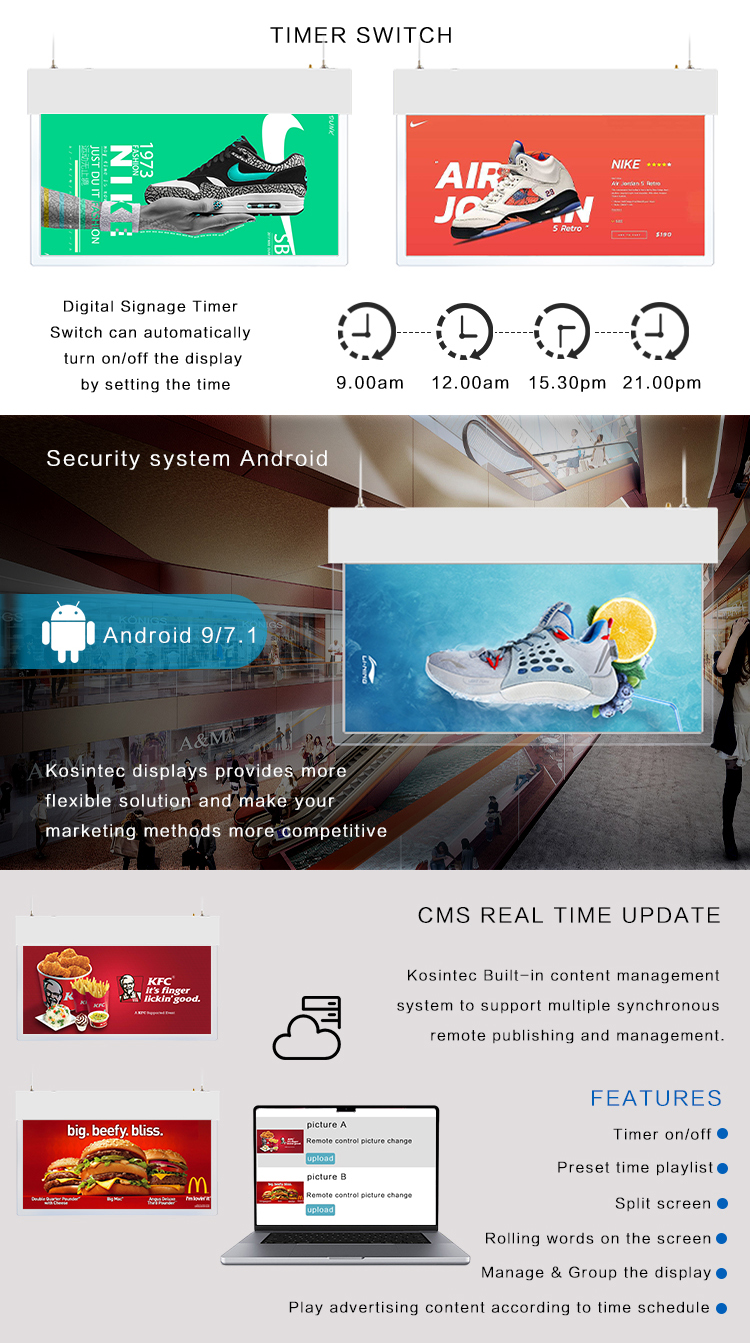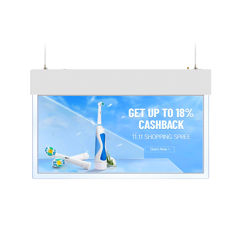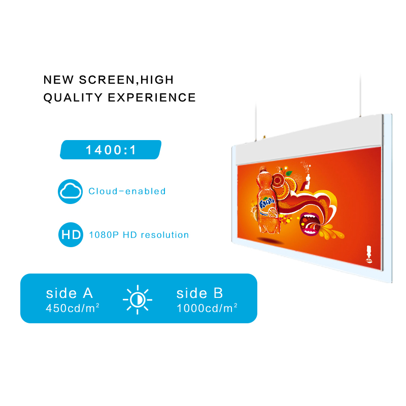 The inward facing screen can provide product info and promotion info.