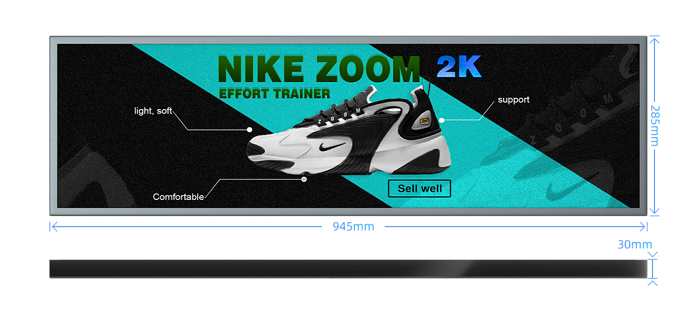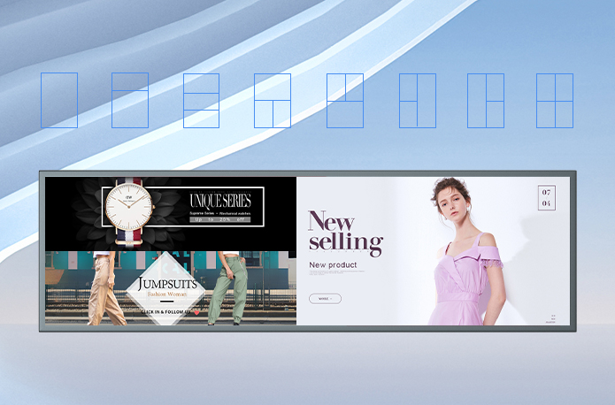 Kosintec 37.6 inch LCD bar display supports a variety of split-screen forms, and can play pictures and videos at the same time:online and Android versions can support more than 20 split-screen methods, and the split-screen area can be adjusted by itself