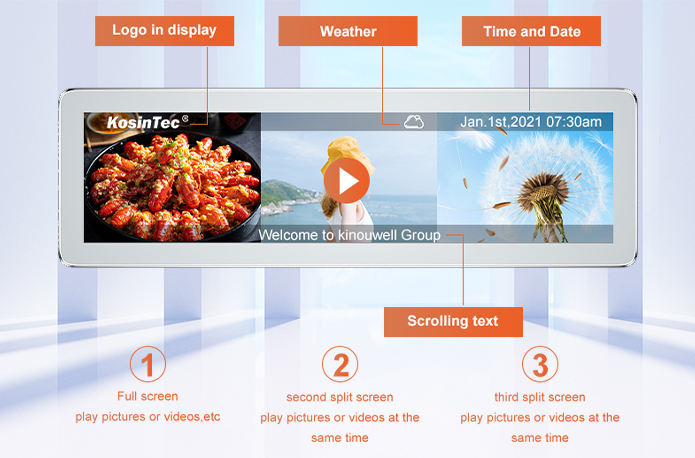 Kosintec 8.8 inch Bar Type LCD display monitor commercial screens advertising playing equipment with ultra-clear picture quality, with high brightness,no stretching and no deformation
