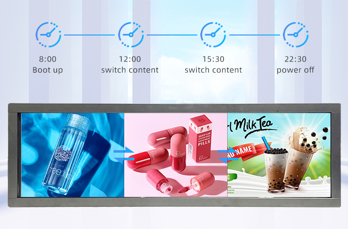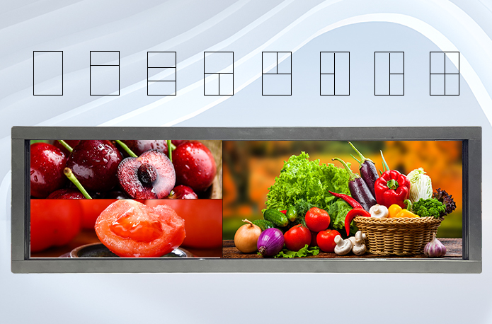 Kosintec 36.5 inch stretched bar touch display supports a variety of split-screen forms, and can play pictures and videos at the same time: online and Android versions can support more than 20 split-screen methods, and the split-screen area can be adjusted by itself