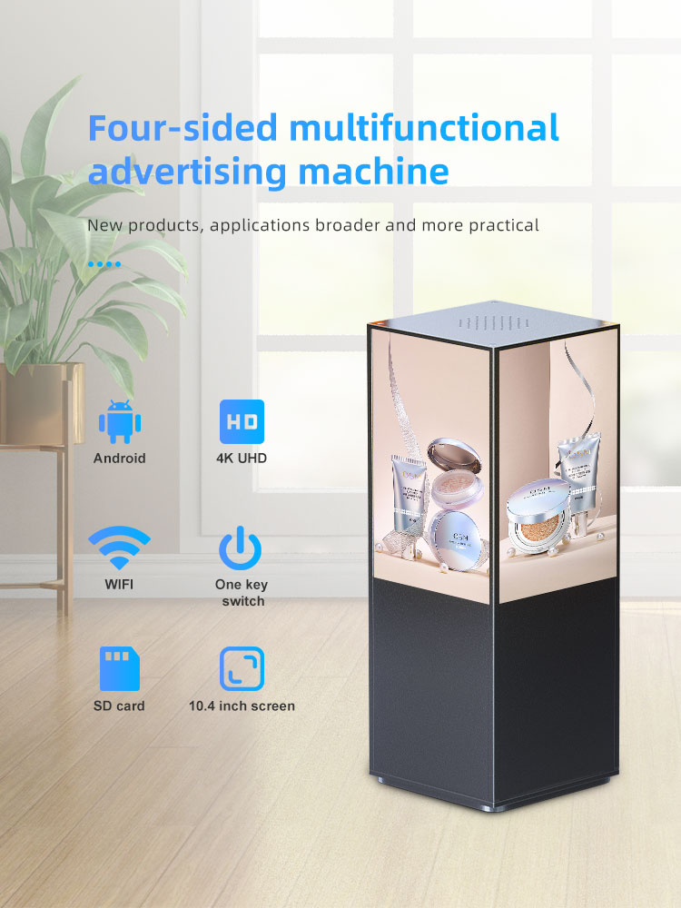 Màn hình 10,4 inch Màn hình bốn mặt chất lượng cao Màn hình quảng cáo đa chức năng Màn hình cảm ứng điện dung cho cửa hàng được phát triển bởi các nhà thiết kế sáng tạo, kỹ thuật viên giàu kinh nghiệm và các chuyên gia R&D được đào tạo bài bản của chúng tôi. Nó được tạo ra để có một cái nhìn hấp dẫn và cấu trúc hợp lý. Hơn nữa, được làm bằng nguyên liệu thô chất lượng cao, tường video LCD, màn hình kệ kỹ thuật số, bảng menu kỹ thuật số và bảng hiệu kỹ thuật số có độ sáng cao có rất nhiều ưu điểm.