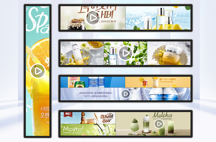 Kosintec 21,2 inch Màn hình LCD dạng thanh kéo dài để quảng cáo trên kệ hàng Hệ thống Wi-Fi Android Màn hình LCD hỗ trợ nhiều dạng màn hình chia nhỏ, có thể phát hình ảnh và video cùng lúc: phiên bản trực tuyến và phiên bản Android có thể hỗ trợ hơn 20 phương pháp chia màn hình, và vùng chia đôi màn hình có thể được tinh chỉnh bởi chính nó.