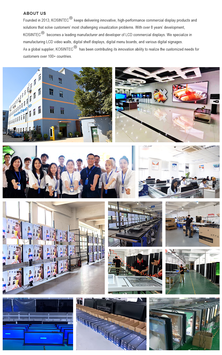 In China, ordinary working time is 40 hours for employees who work full time. In Shenzhen kosintec Co., Ltd, most employees work abiding by this kind of rule. During their duty time, each of them devotes their full concentration to their work so as to provide customers with the highest-quality Digital Window Display Screen and an unforgettable experience of partnering with us.