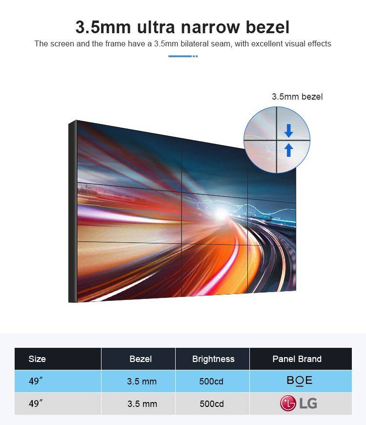 Shenzhen kosintec Co., Ltd has been focusing on improving technologies to develop new products on a regular basis. We have successfully made Kosintec Ks-4935bl 49 Inch 3.5mm 500cd Ultra Narrow Bezel Lcd Video Wall For Commercial Advertising Displays launch to the public as scheduled. With its new features, LCD video walls, digital shelf displays, digital menu boards, and high brightness digital signages is expected to lead the industry trend. As soon as Kosintec Ks-4935bl 49 Inch 3.5mm 500cd Ultra Narrow Bezel Lcd Video Wall For Commercial Advertising Displays was launched on the market, it received positive feedback from many customers, who said that this type of product can effectively solve their needs. For product inquiries, technical support, and other questions, you can reach us in any way stated on our 'Contact Us' page.